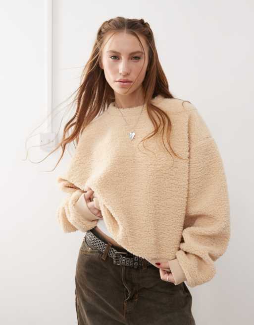 COLLUSION - Beige afslappet sweatshirt i imiteret lammeskind