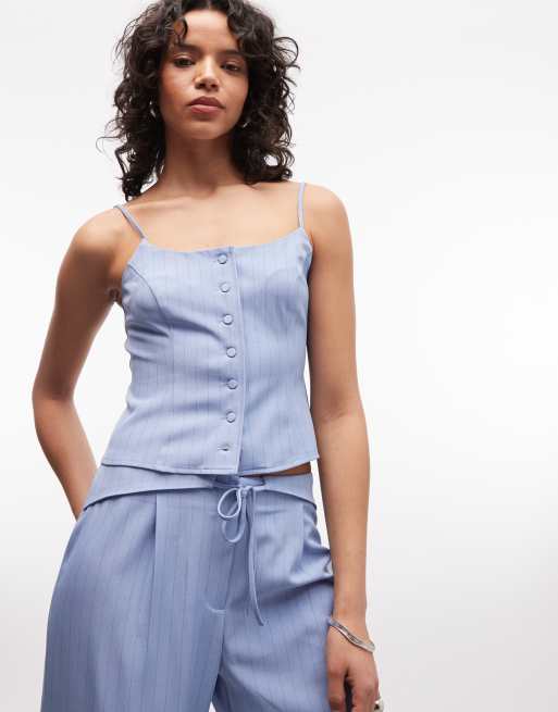 COLLUSION - Blå cami-top med knapper og nålestriber - Del af sæt