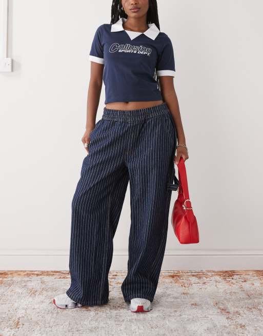 COLLUSION - Blå pull-on cargobukser med striber