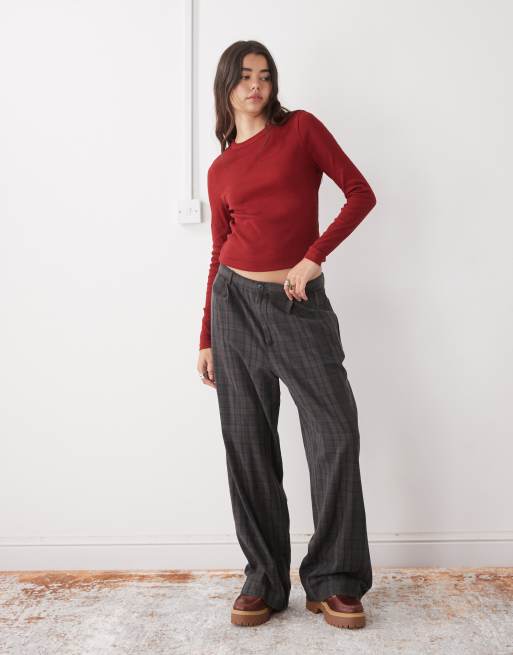 COLLUSION - Bordeaux figursyet ribstrikket T-shirt med lange ærmer