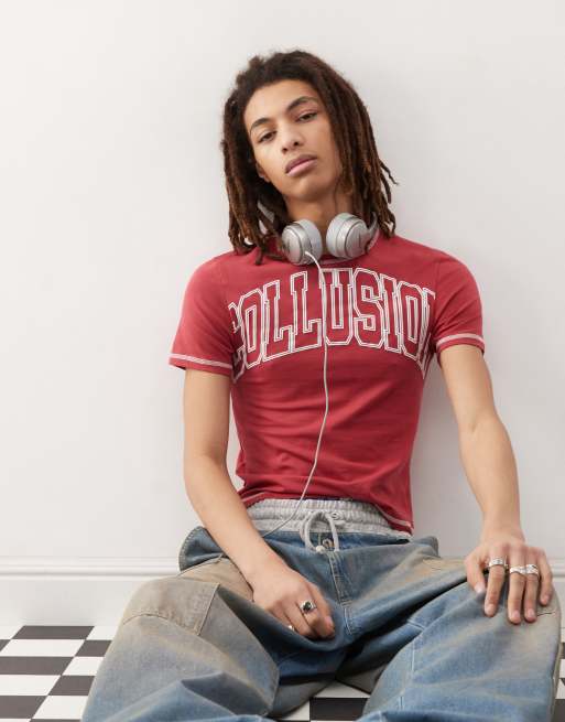 COLLUSION - Bordeauxfarvet T-shirt med broderet branding