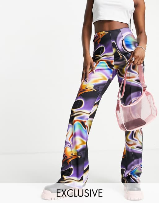 COLLUSION - Bukser med svaj og multifarvet hvirvelprint i satin