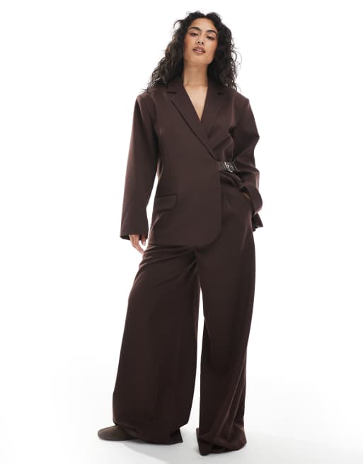 COLLUSION - Chokoladebrune skræddersyede bukser med vide ben - Del af sæt
