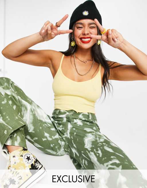 COLLUSION - Cropped bralette med bølgekant i citrongul