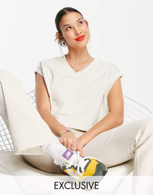 COLLUSION - Cropped ærmeløs sweatshirt-top i råhvid