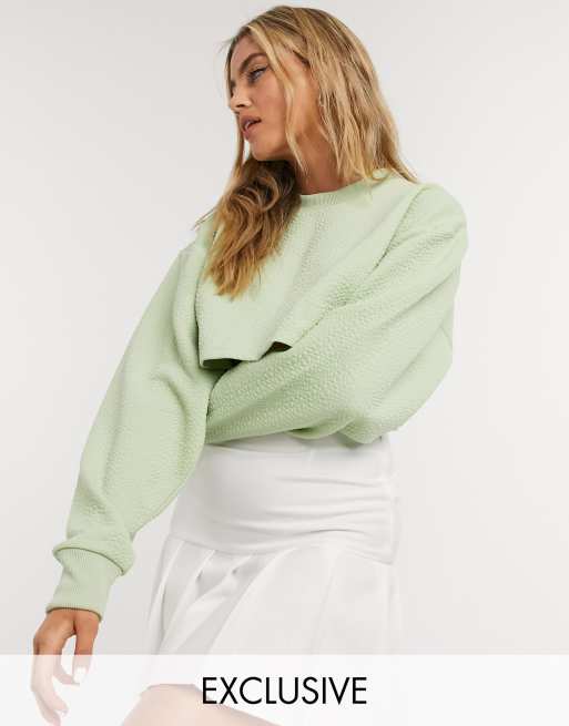 COLLUSION - Cropped, tekstureret sweatshirt i bleg grøn - Del af sæt