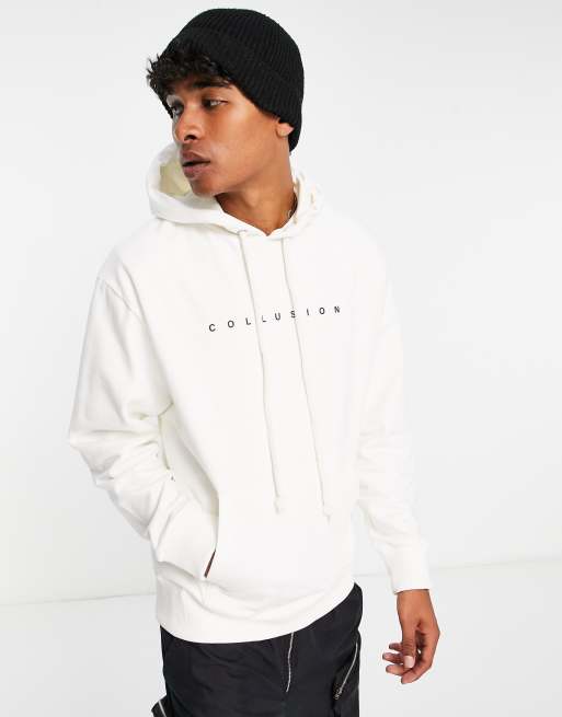 COLLUSION - Ecrufarvet hættetrøje med logo