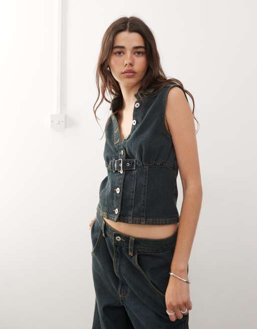COLLUSION - Festival - Denimvest med spænde i grøn vask - Del af sæt