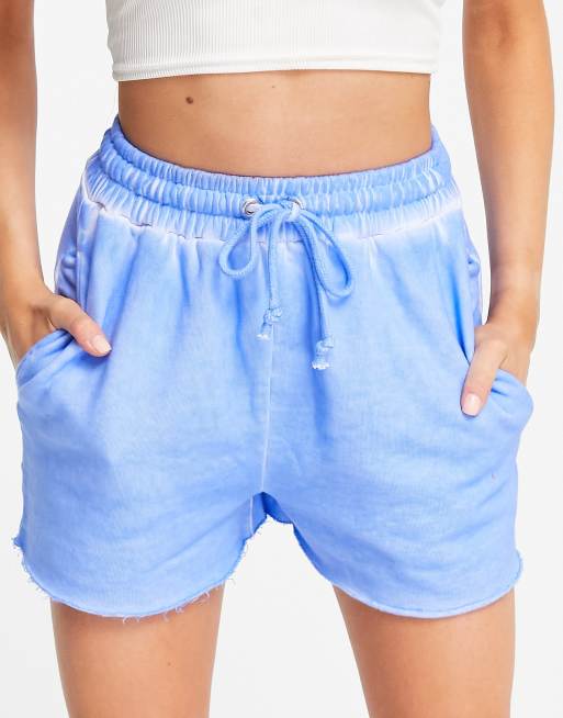 COLLUSION - Forvaskede shorts i blå med rå kant