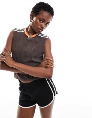 COLLUSION - Forvasket brun top med ringerdetaljer