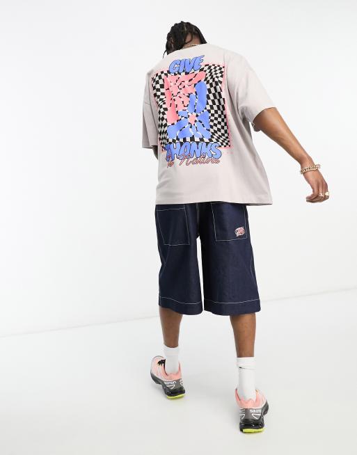 COLLUSION - Grå t-shirt med 'give thanks'-grafik
