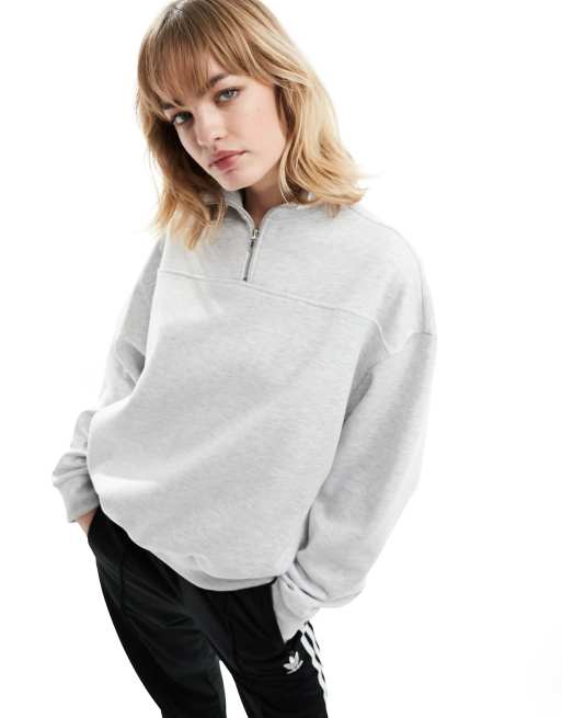 COLLUSION - Gråmeleret sweatshirt med kort lynlås