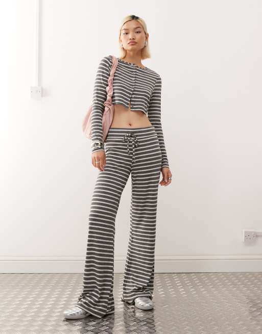 COLLUSION - Gråstribede yogabukser med lige ben - Del af sæt