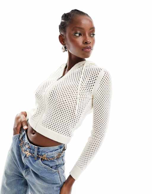 COLLUSION - Hæklet hættetrøje i ecrufarve