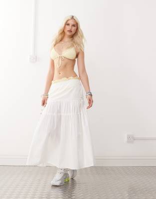 COLLUSION - Hvid maxinederdel med flæser og sænket talje i poplin