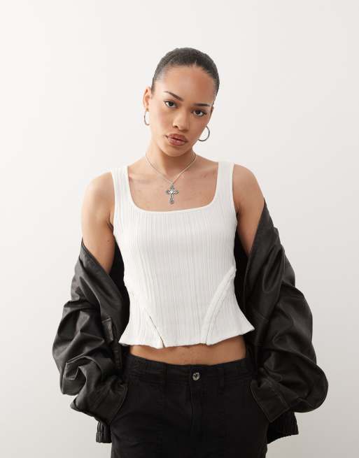 COLLUSION - Hvid overdel med krog- og hægtedetalje