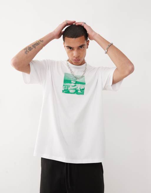 COLLUSION - Hvid oversized T-shirt med print på brystet
