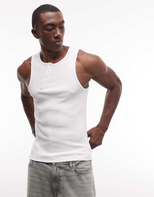 COLLUSION - Hvid ribbet overdel i henley-design med asymmetrisk snit