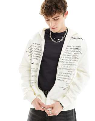 COLLUSION - Hvid skater-hættetrøje med lynlås og tekstprint