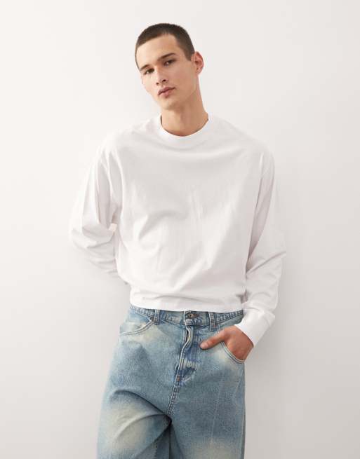 COLLUSION - Hvid T-shirt med lange ærmer i firkantet pasform