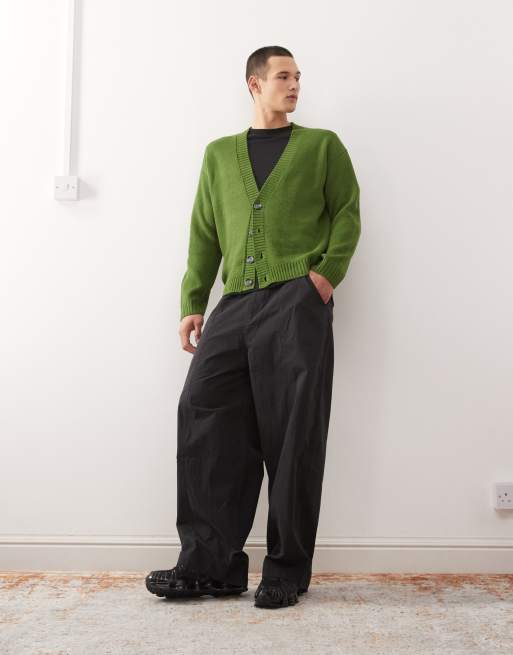 COLLUSION - Kakigrøn cardigan i strik med V-hals