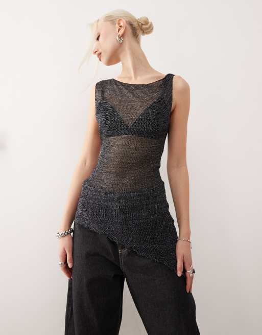 COLLUSION - Koksgrå asymmetrisk overdel med glimmer i strik