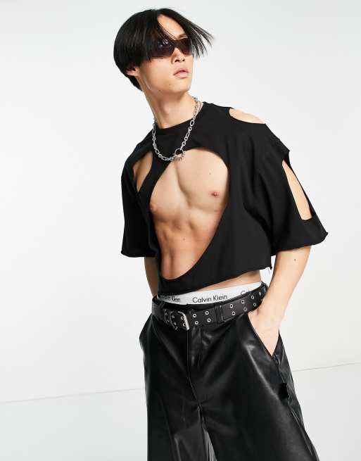 COLLUSION - Kortærmet T-shirt med udskæring i sort