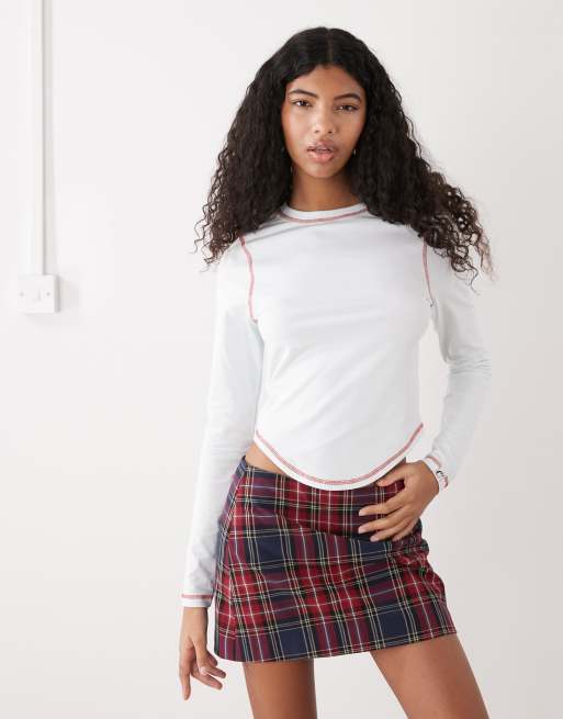 COLLUSION - Lyseblå top med lange ærmer og buet kontrastkant