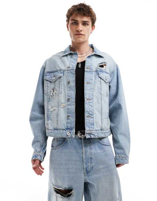 COLLUSION - Lyseblå trucker-jakke med flænger i denim - Del af sæt