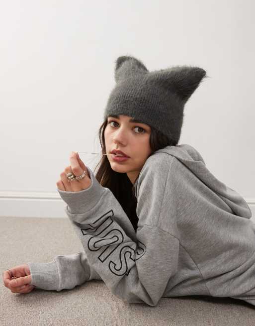 COLLUSION - Lysegrå lodden ørehat