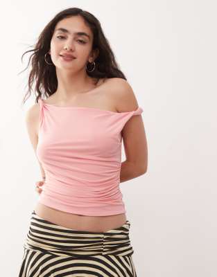COLLUSION - Lyserød top med snoede stropper