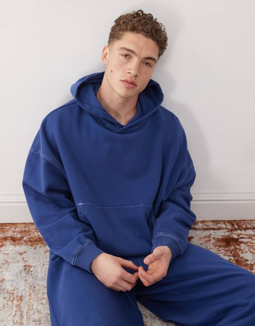 COLLUSION - Marineblå cropped hættetrøje med sømdetaljer og print i firkantet pasform