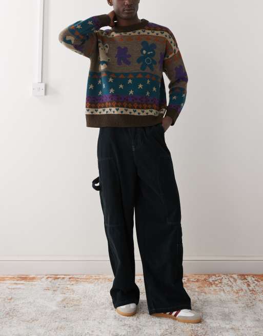 COLLUSION - Marineblå posede tømrer-jeans i fløjl