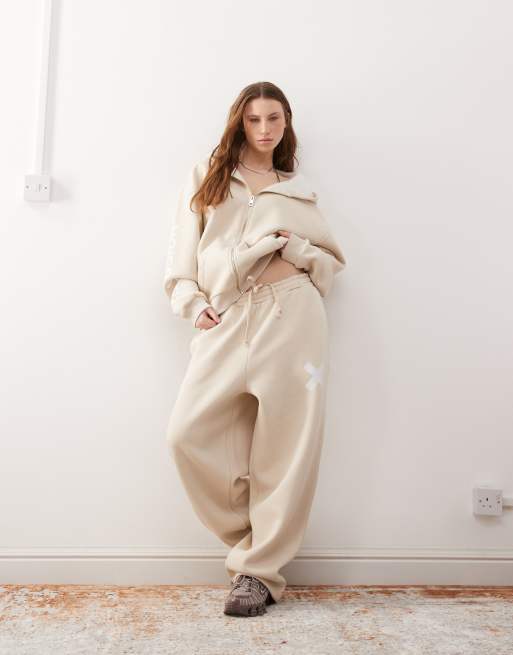 COLLUSION - Meleret havrefarvede afslappede joggingbukser - Del af sæt