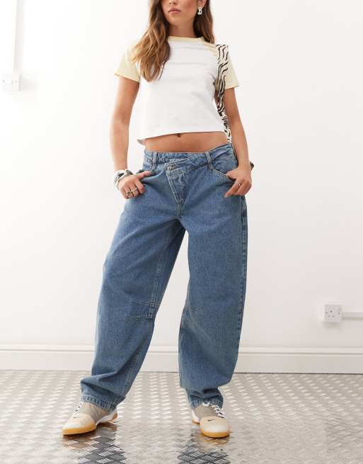 COLLUSION - Mellemvaskede jeans med tøndeformede ben og længere kant bagpå
