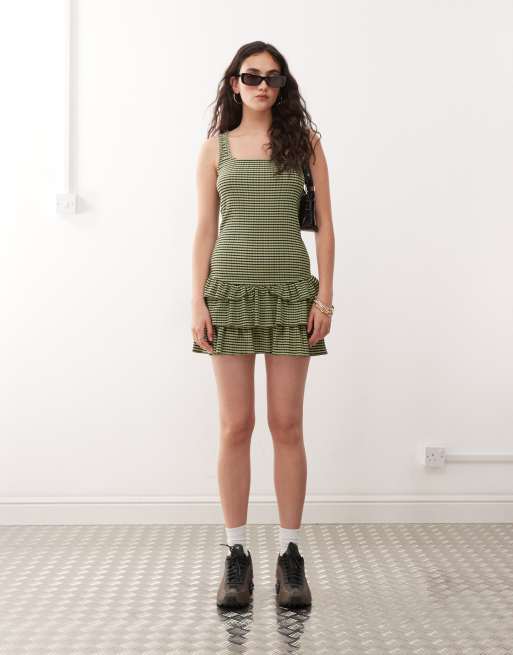 COLLUSION - Minikjole med grønne gingham-tern