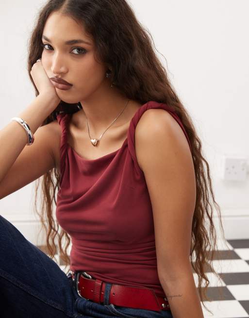 COLLUSION - Mørkerød top med firkantet hals og snoede stropper
