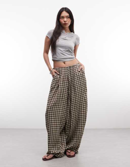COLLUSION - Naturfarvede bukser med ekstrastore ballonben og tern
