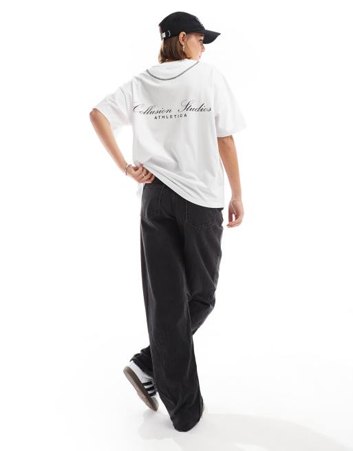 COLLUSION - Oversized og hvid T-shirt med Collusion Studios-logo