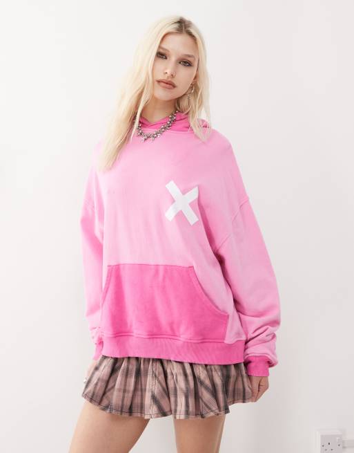 COLLUSION - Pink og falmet hættetrøje i syrevask
