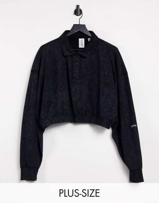 COLLUSION - Plus - Cropped polotop i koksgrå syrevask
