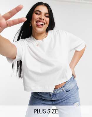 COLLUSION Plus - Hvid boxy t-shirt med korte ærmer