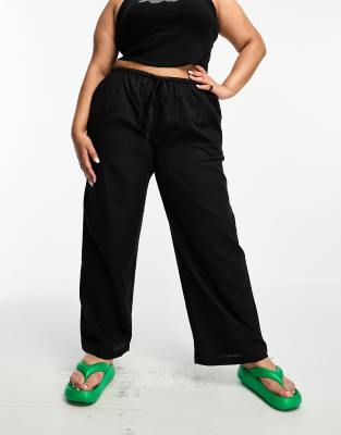 COLLUSION Plus - Lavtaljede strandbukser i sort hør