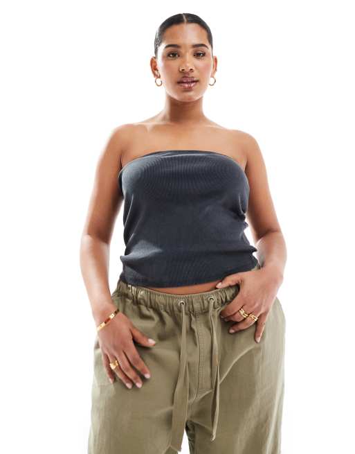 COLLUSION Plus - Longline-top med bandeau-snit i vasket sort