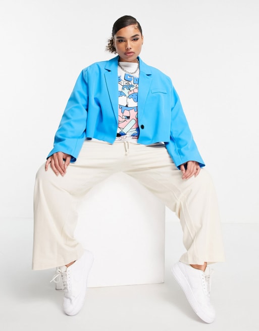 COLLUSION Plus - Sæt med cropped blazer og slå-om-mininederdel i blå