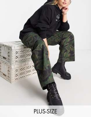 COLLUSION Plus - Ultimate - Lavtaljede bukser i kakigrønt camouflage-print
