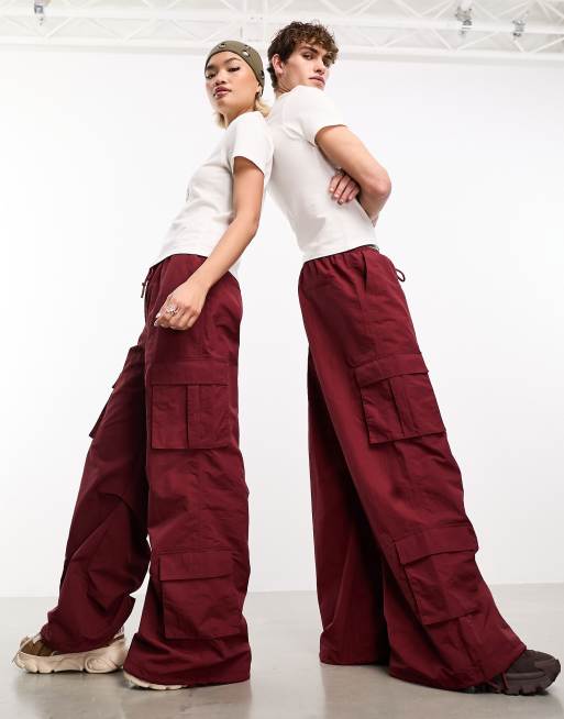 COLLUSION - Posede bukser i mørkerødt ripstop
