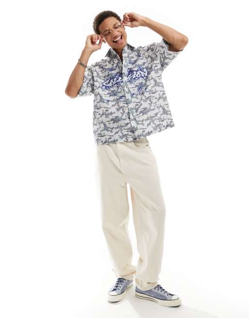 COLLUSION - Skaterskjorte i vasket blåt camouflage-print i firkantet pasform