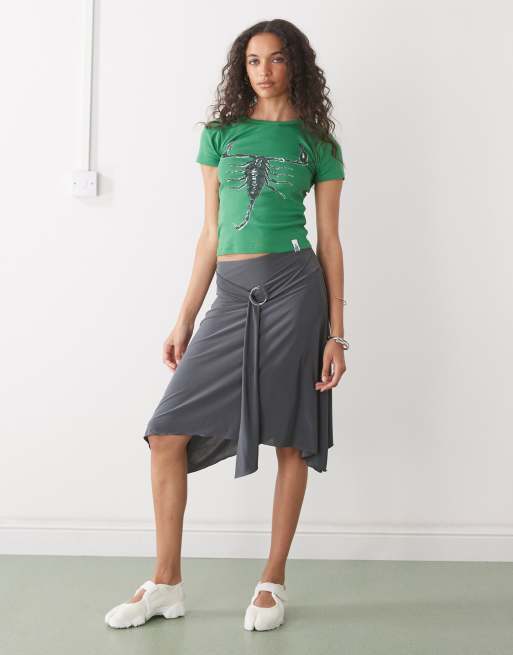 COLLUSION - Skifergrå midinederdel med lav talje og ringdetalje