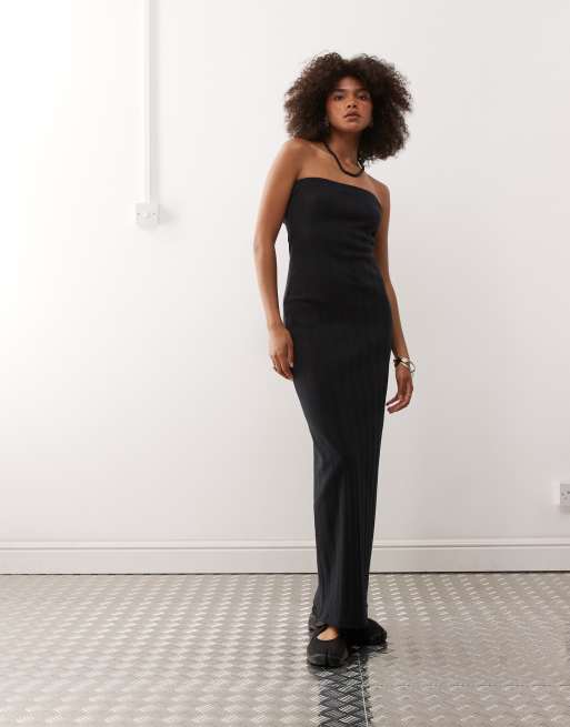 COLLUSION - Sort bandeau-maxikjole i pointelle-strik